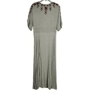 FREE PEOPLE Embroidered Midi Dress Sage Green Boho Festival M