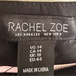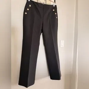 Sleek black stretch trousers from Rachel Zoe. Straight silhouette with subtle gold-tone hardware. Clean waistband and tailored look. Polished and versatile for many outfits.