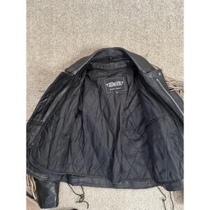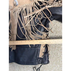 VTG UNIK Jacket Womens Medium Black Tan Leather Fringe Western Motorcycle Chaps