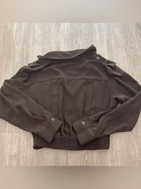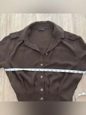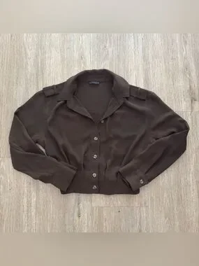 Zara Women's Chocolate Brown Button-Front Collared Blouse Small