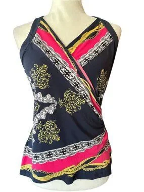 Vintage Cache Y2K Halter Top Scarf Print Chain Detail - Size M