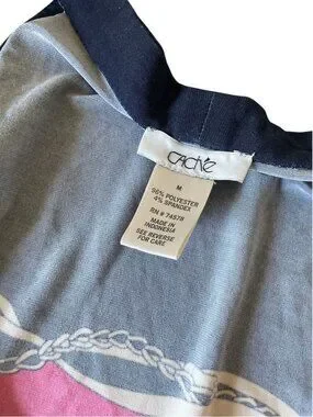 Vibrant "Art in Motion" style print typical of high-end vintage Cache collections.