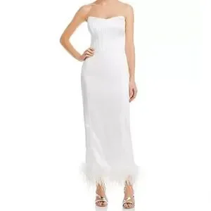 NWT Aqua x Maeve Bustier Feather Trim Dress Bloomingdale’s Bridal Size S…
