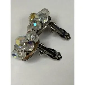 Vintage Aurora Borealis Earrings Clear Crystal Sparkle Clip Silver Tone Unsigned