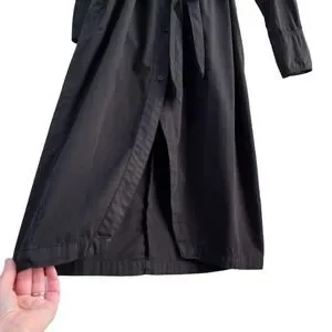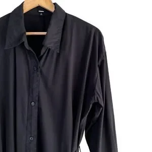 Monrow Asymmetrical Poplin Tie Shirt Dress in Black 100% Cotton, Size Small