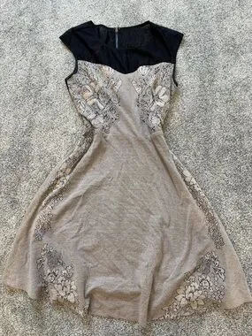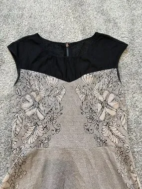 Betsey Johnson Black & Beige Floral Lace Midi Dress