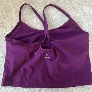 Beyond Yoga Women's L Spacedye Slim Racerback Cropped Tank Bra Aubergine Beet