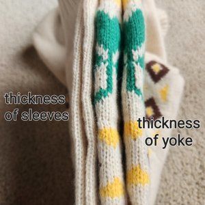 This shamrock sweater is perfect for St. Patty's Day! If you've not worn a fair isle or yoked sweater before, the yoke is thicker than the rest of the sweater due to incorporating the design into the knit.