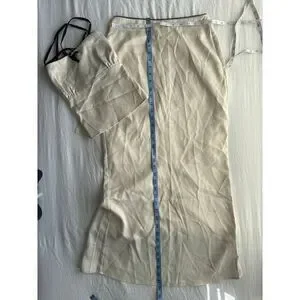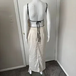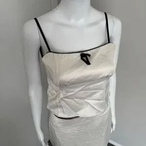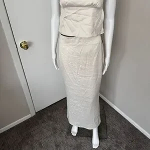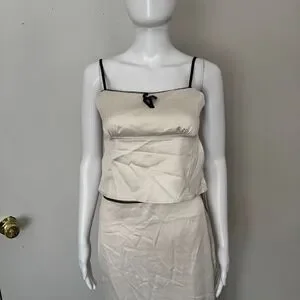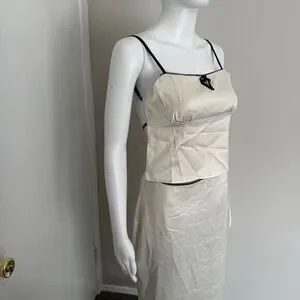 Commense Satin Elegant beige Spaghetti Straps and Bow Detail Maxi Skirt set S