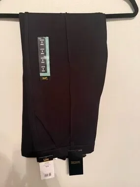 Lee straight-leg pants in black. Smooth fabric with minimal detailing. Comfortable mid-rise fit for everyday wear. Timeless, versatile wardrobe piece.