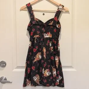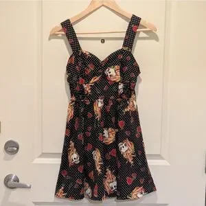 EUC Hot Topic 2013 S Cotton Rose and Flaming Skull Polka Dot Pinup Dress