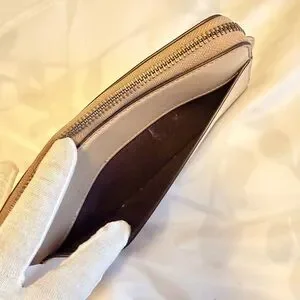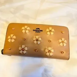 SEO tags: Coach wallet, floral wallet, tan leather wallet, Coach zip around, designer wallet, Y2K luxe, neutral accessories, feminine wallet