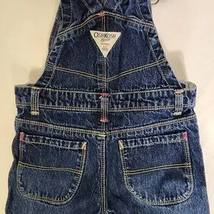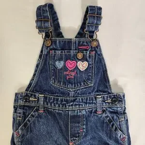 OshKosh Bgosh Toddler Girls Vestbak Overalls 18mo Blue Denim Embroidered Hearts