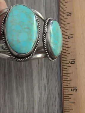 Turquoise Stone Triple Oval Silver Cuff Bracelet