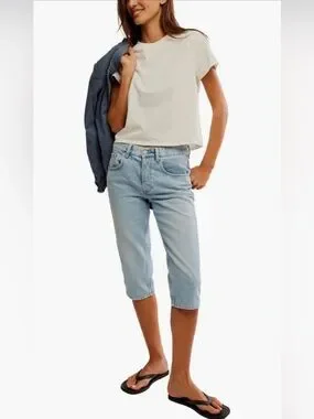 Summery temps call for abbreviated jeans cut from sturdy nonstretch denim and turned to the perfect shade of bleach-baked fade.