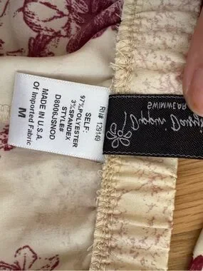 Soft floral two-piece lounge set. Cream background with burgundy floral print. Lightweight and breezy fabric. Elastic waist shorts. Feminine tie-front top. Great for lounging or sleepwear.