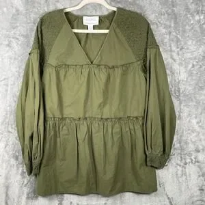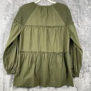 Anthropologie Mare Mare Blouse Medium Green Long-Sleeve V Neck Ruffled Bohemian