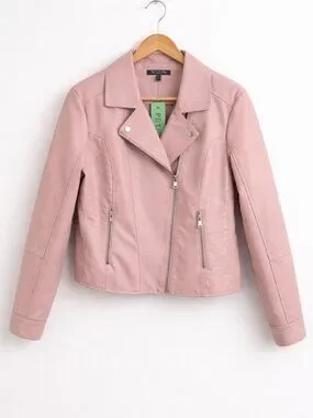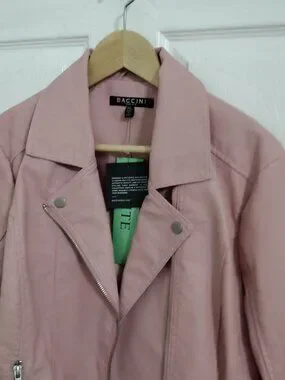 Braccini Petite Blush Pink Moto Jacket XL NWT Faux Leather Zip Biker