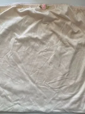 Soft cream tank top featuring a small pink rose trim at the neckline. Lightweight, breathable fabric for comfortable everyday wear. Simple sleeveless design that layers easily with other pieces. Feminine pink detail adds a subtle, elegant touch.