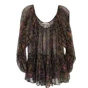 NWOT MES DEMOISELLES Top 40~M Chiffon Sheer Crinkle A-Line Tiered Multi”Katarina