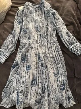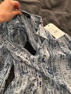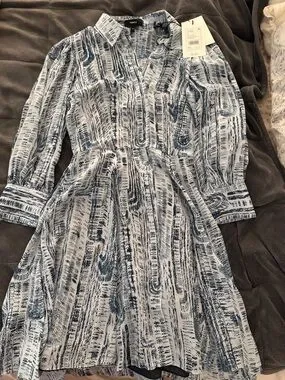 Theory 00 teal mini silk shirt dress. Light Blue Printed V-Neck Mini Dress