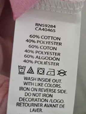 Vibrant tie-dye pattern in pink and white. Classic crewneck with short sleeves. Soft, casual fit. In very good previously owned condition. No rips and no stains.