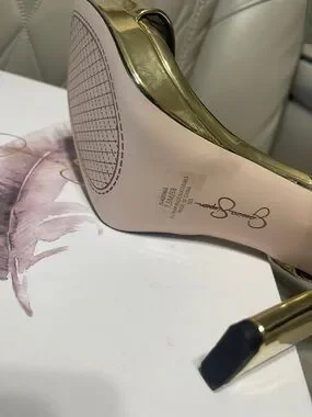 Jessica Simpson ADONIA Metallic Gold Ankle-Strap Platform Heels