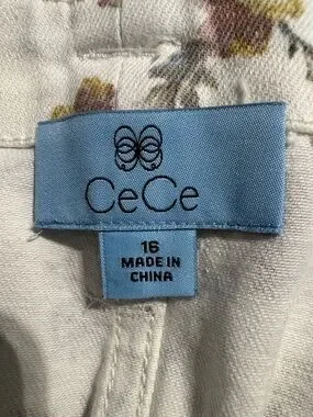 CeCe Floral Tie-Waist Mini Skirt - Cream Floral Size 16