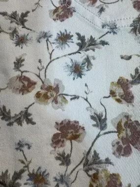 CeCe mini skirt in a cream base with an all-over floral print. Features a self-tie waist for a polished silhouette. Soft, feminine pattern ideal for casual or dressed-up looks.