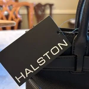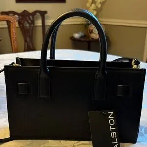 Halston Heritage Black Leather Top-Handle Satchel with Gold Hardware