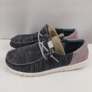 Hey Dude Wendy Funk Jersey Shoes Charcoal Gray & Light Mauve Women's Size 10.