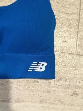 sports bra, new balance, athletic wear, workout top, gym clothes, athleisure, racerback bra, padded sports bra, blue sports bra, activewear women, fitness clothing, yoga bra, running gear