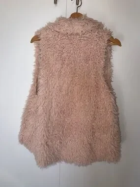 i joah branded faux fur vest with pockets in blush pink. Soft, fluffy, cozy texture. Smooth satin-like lining.