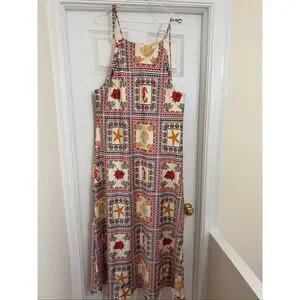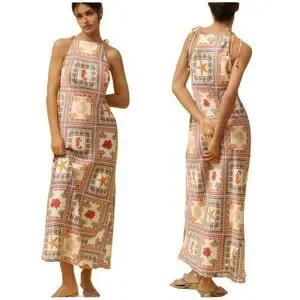 This midi dress by Anthropologie features tie neck straps and a column silhouette. It is fabricated from viscose and should be machine washed.