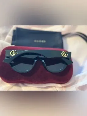 Authentic Gucci GG0957S sunglasses in black. Features the chunky gold GG logo on both arms.