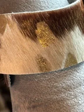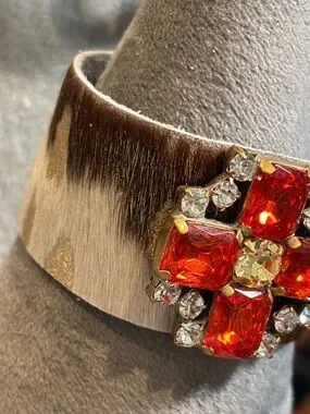 Handmade cowhide bracelet with Crystal repurposed brooch! One of a kind!