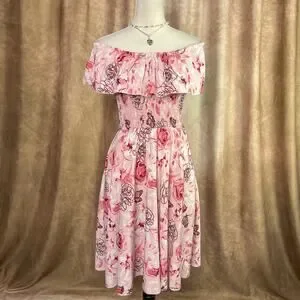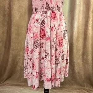 Y2K Ruffled Dress Midi Smocked Top Floral Rose Butterfly Pink Fairy Folk Spring