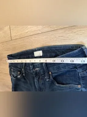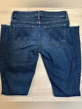 Slim-fit women’s skinny jeans in dark indigo. Stretch denim for a sleek silhouette. Classic five-pocket design with subtle fading. Easy to style for day or night looks. These are used BUT in great condition. #motherjeans #skinnyjeans