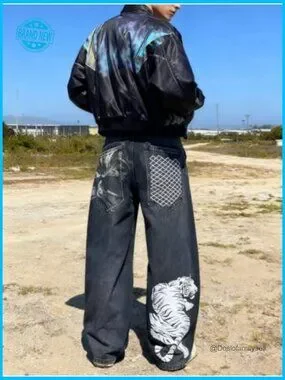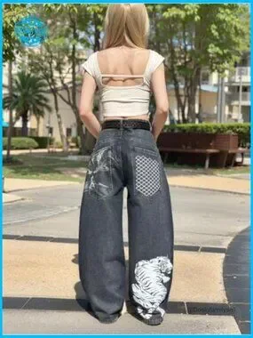 Unisex Y2K Graphic Print Baggy Jeans High Waist Wide Leg Streetwear Denim