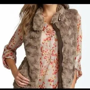 Cozy soft Sanctuary faux fur vest in neutral taupe.