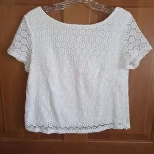 Lilly Pulitzer White Crochet Side Zip Lined Blouse Size Small
