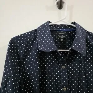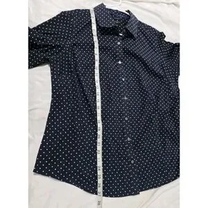 Talbots Womens Polka Dot Button Up Top 14W Wrinkle Resistant Business Casual
