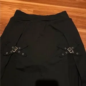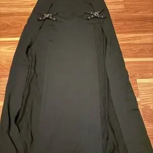 HALARA Black Maxi Skirt with Double Front Slits and buckle Accents