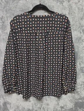 Investments Black Blouse with Orange and Cream Square Dot Print Sz XLP