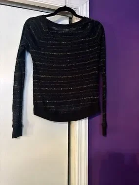 Genuine Y2K Mudd Sweater. Lightweight knit sweater with subtle metallic threading. Crew neckline and textured stitch pattern. Gentle shimmer for a dressy look.