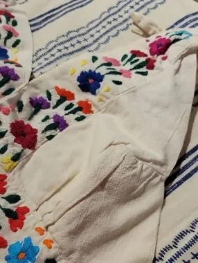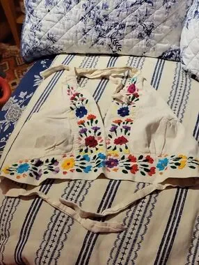 Vintage 90's bohemian adorable cotton embroidered bra top with adjustable ties at neck and back and daets for good fit. Made and bought in Mexico. Fits size 32 bust well, and certainly attractive on larger busts too. So cute with a maxi skirt, or over a tshirt. Be you!