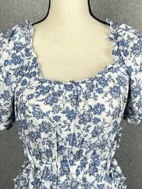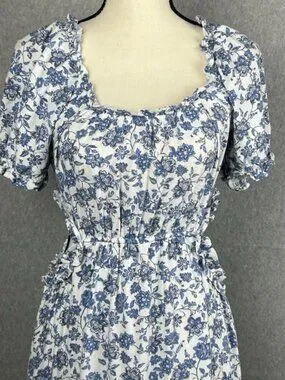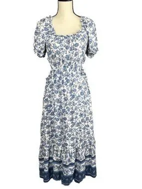 Anthropologie By The River Midi Dress Blue Floral Cutout Ruffle Tiered Cottage L