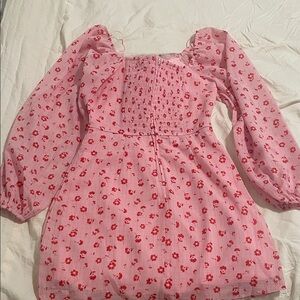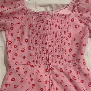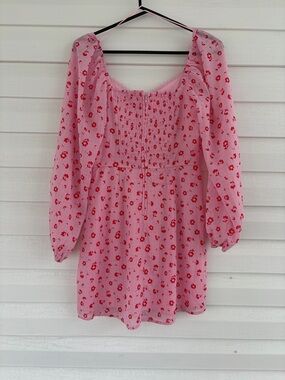 Francesca's Pink Red Floral Mini Puff Sleeve Feminine Romantic Summer Dress