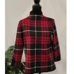 Anne Klein Womens Red Black Plaid Mock Neck 3/4 Sleeve Knit Sweater Size S