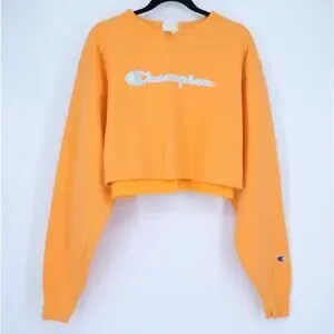CHAMPION Reverse Weave Cropped Sweatshirt Orange Pullover Crew Neck Women's L